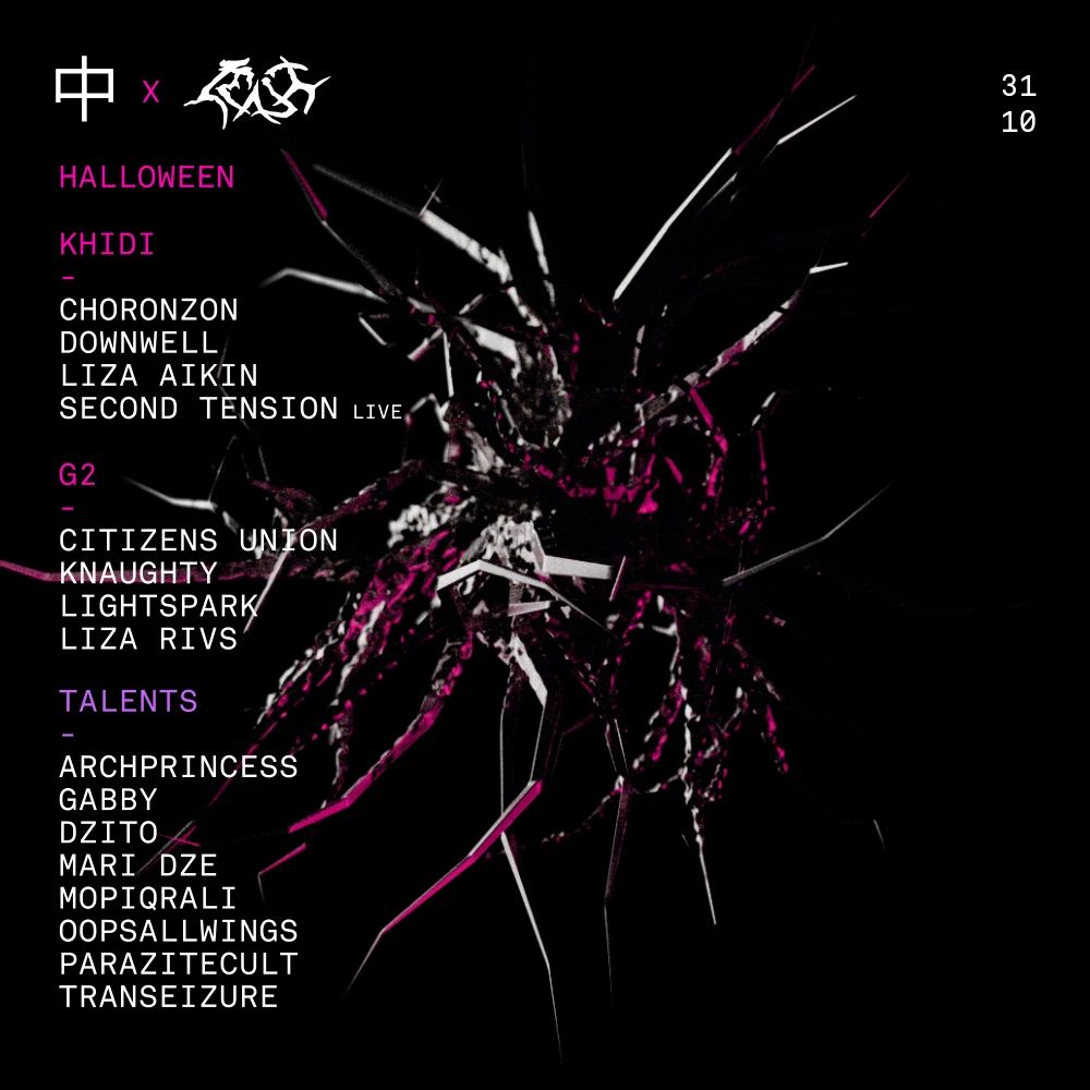 31 ოქტომბერს, KHIDI და ქვიარ ივენთების სერია LEASH წარმოგიდგენთ ჰელოუინის ღამეს, სადაც დაუკრავს ათენსა და ლონდონში დაფუძნებულ დიჯეი და კურატორი, ლეიბლის Khemia Records და KAOS London დამფუძნებელი Choronzon. მასთან ერთად ლაივ შესრულებით წარდგება გამოცდილი ბერძენი დიჯეი, პროდიუსერი და ლაივ შემსრულებელი Second Tension. არტისტებს შეუერთდებიან: ბერლინში დაფუძნებული არტისტი, ავტორი რელიზებისა ლეიბლებზე: Gegen Records, OBSCUUR და Voxnox – Liza Aikin და კლუბის ადგილობრივი რეზიდენტი, ლეიბლის Persephonic Sirens წევრი და პროექტის Initial Light თანადამფუძნებელი Downwell